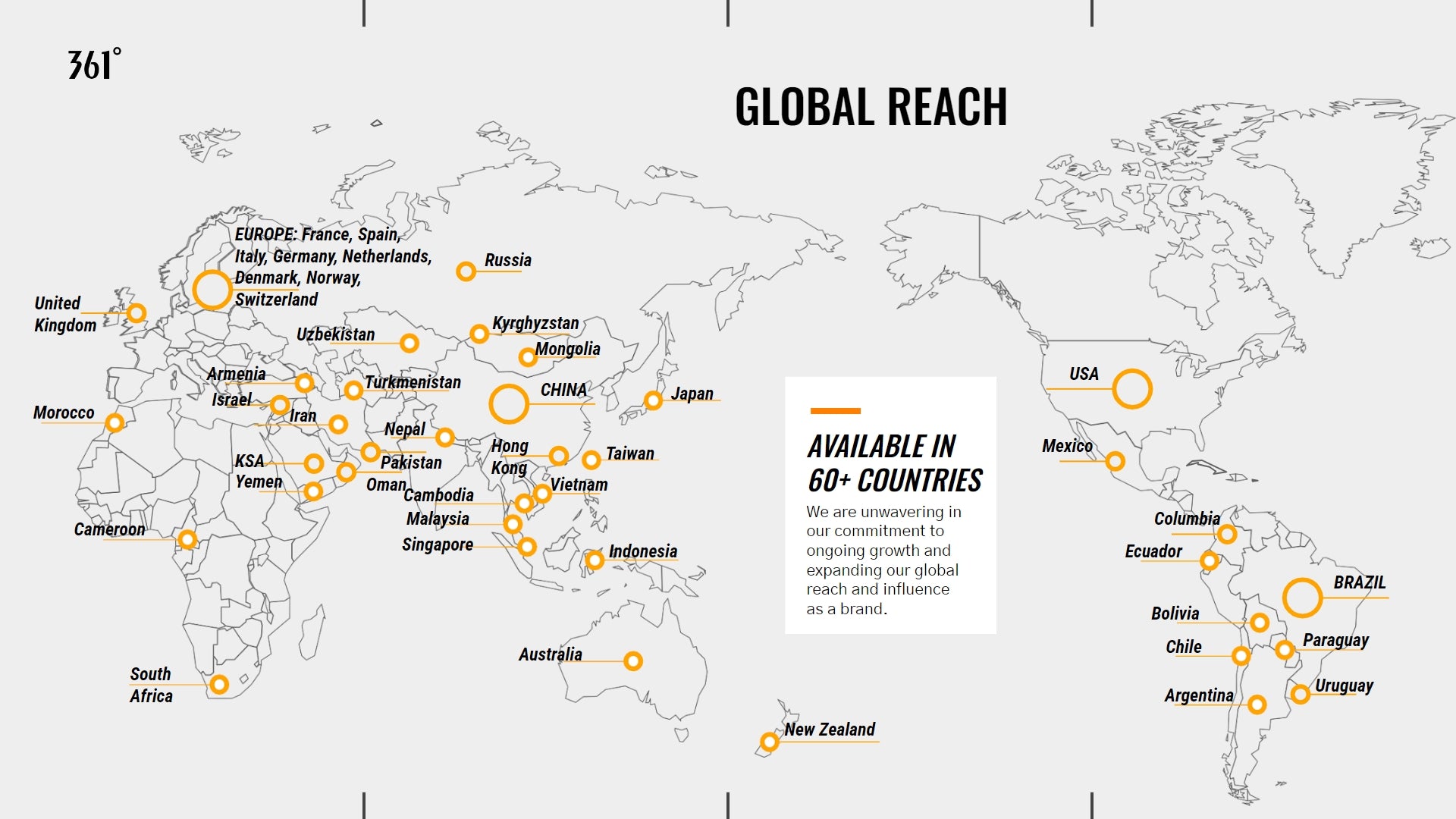 We're a fast growing global brand with a distribution network spanning more than 60 countries. Our products showcase cutting-edge technologies and set the pace in both functionality and style.